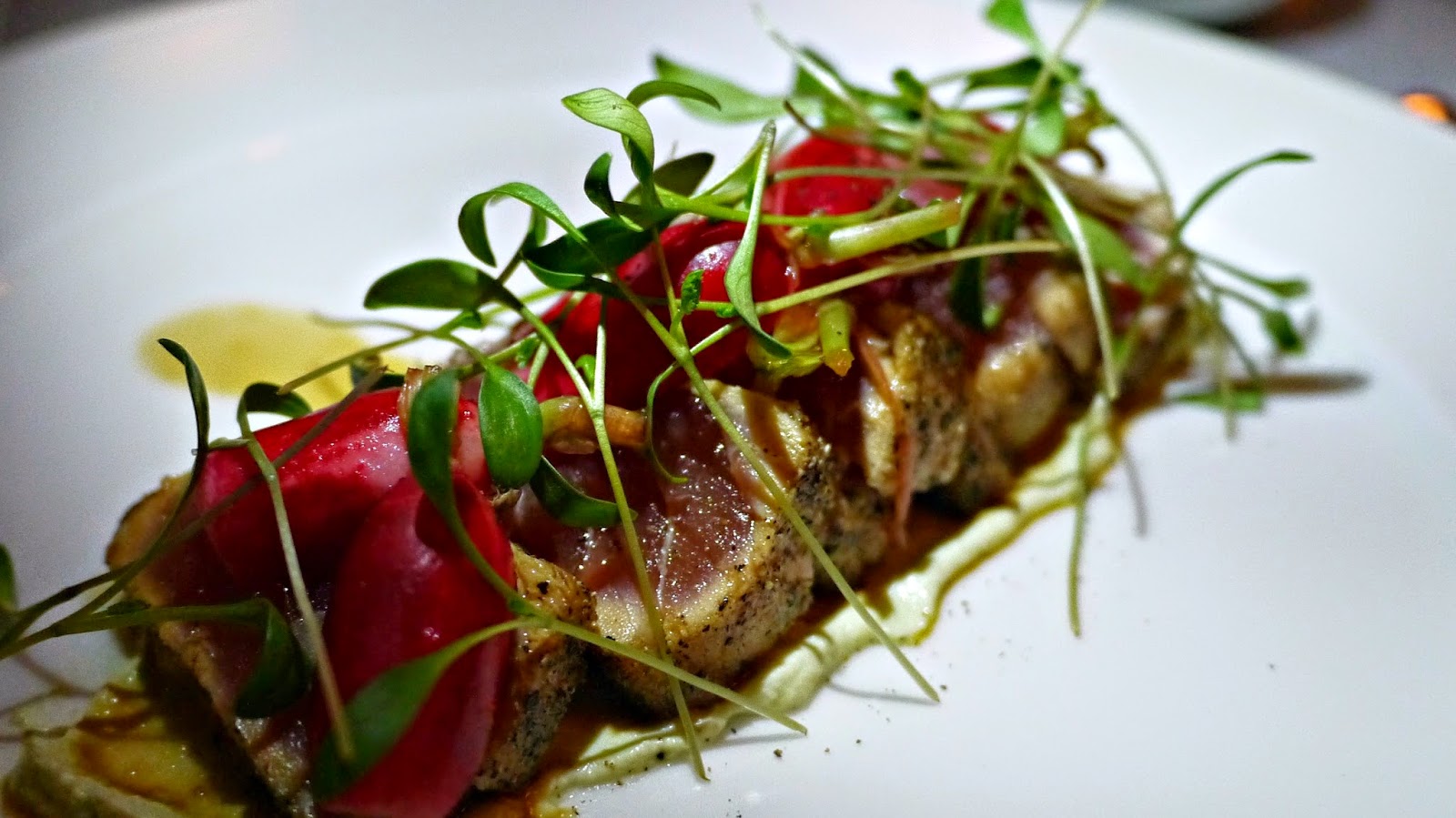To start with I opted for the Seared Tuna with the soy and ginger dressing, while Katie went for the Crab and Avocado cocktail. While we waited for them to arrive we nibbled on the delicious fresh bread. An interesting mix of sourdough, Guinness bread, and soda bread, it was a welcome change from the normal 'white or brown' that's on offer in the majority of other restaurants.