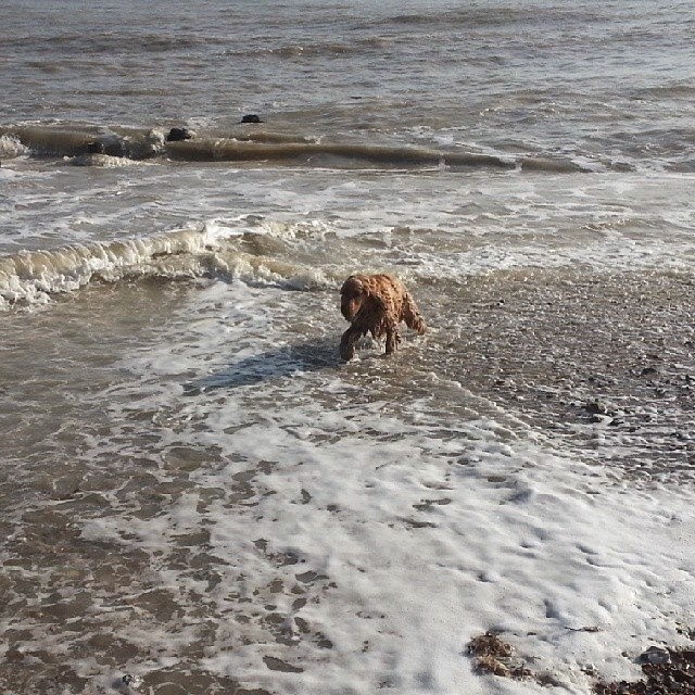When we got to the beach he headed straight for the water and got dumped by a massive wave. Silly thing!