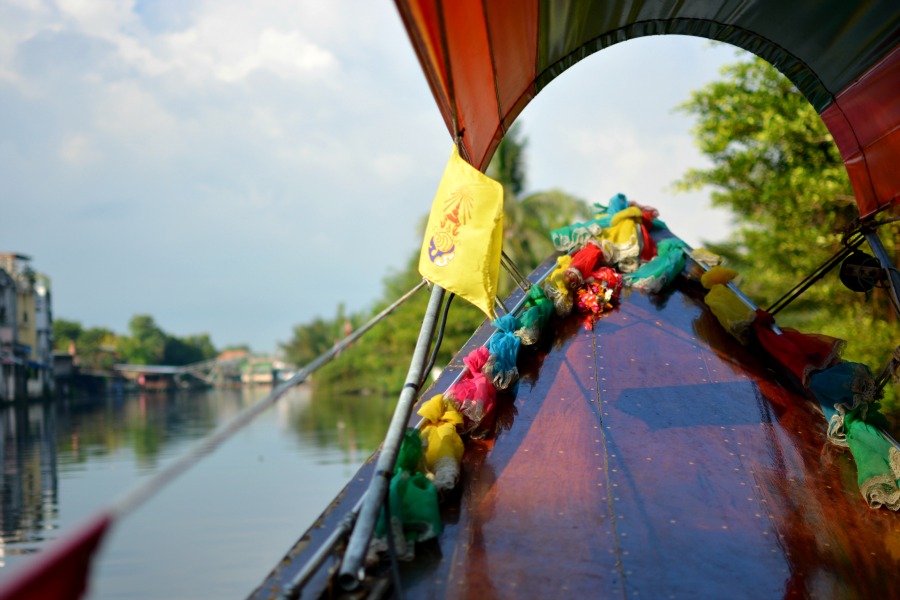 After a very heavy night of drinking at Distil and Mezzaluna, we awoke bright and early at 7:30am to get a private river taxi organised by Lebua. Our boat took us down the canals, and we ate a delicious fresh breakfast of champagne, fruit, and sandwiches while seeing a totally different side of Bangkok. The boat then dropped as off at Wat Arun, which in English is called The Temple of Dawn.