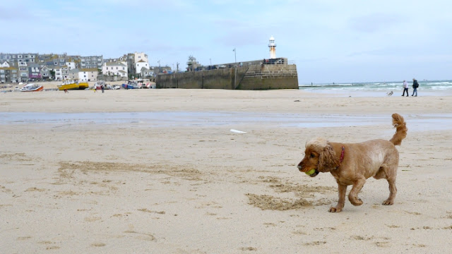 We then walked round the headland towards the Tate art museum, stopping off at a dog-friendly beach on the way to give Dylan a run. He absolutely loves the beach, and he had so much fun running in and out of the water with a couple of Beagle's, leaping in the air over the mini-waves and frolicking on the sand and in the rockpools. He looks so skinny with his summer haircut!