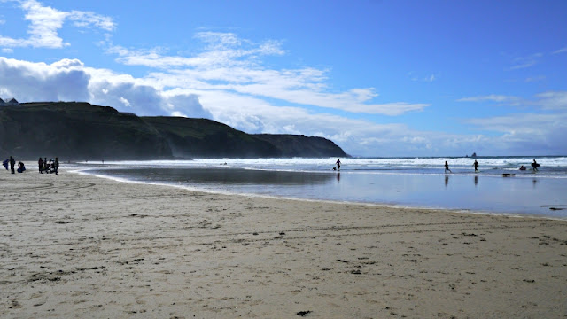 Our second stop was Perranporth beach, we grabbed some pasties from the local bakery and sat on the beach to eat them. Dylan even had a little bit of the end of mine that I didn't want, and he adored jumping in and out of the rockpools.