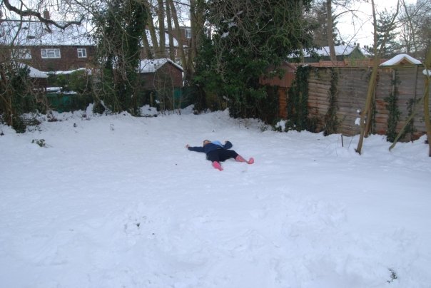 Later in the day my best friend and I went to the garden of the empty house next door to her. No one was living in it at the time, the side gate was open, and we thought 'what a waste of fresh snow!' so we demolished said snow...