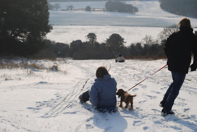 2009 was also just after we moved back to England from Australia, and we were temporarily living right in Guildford town centre while our house was being finished, so at around 6am on the morning of the snow, my brother and I ran onto the cobbled high street that was up to our knees in snow! It was SO much fun! Here are some photos of our adventures of what we got up to (including some super cute puppy shots of Dylan sledging!)