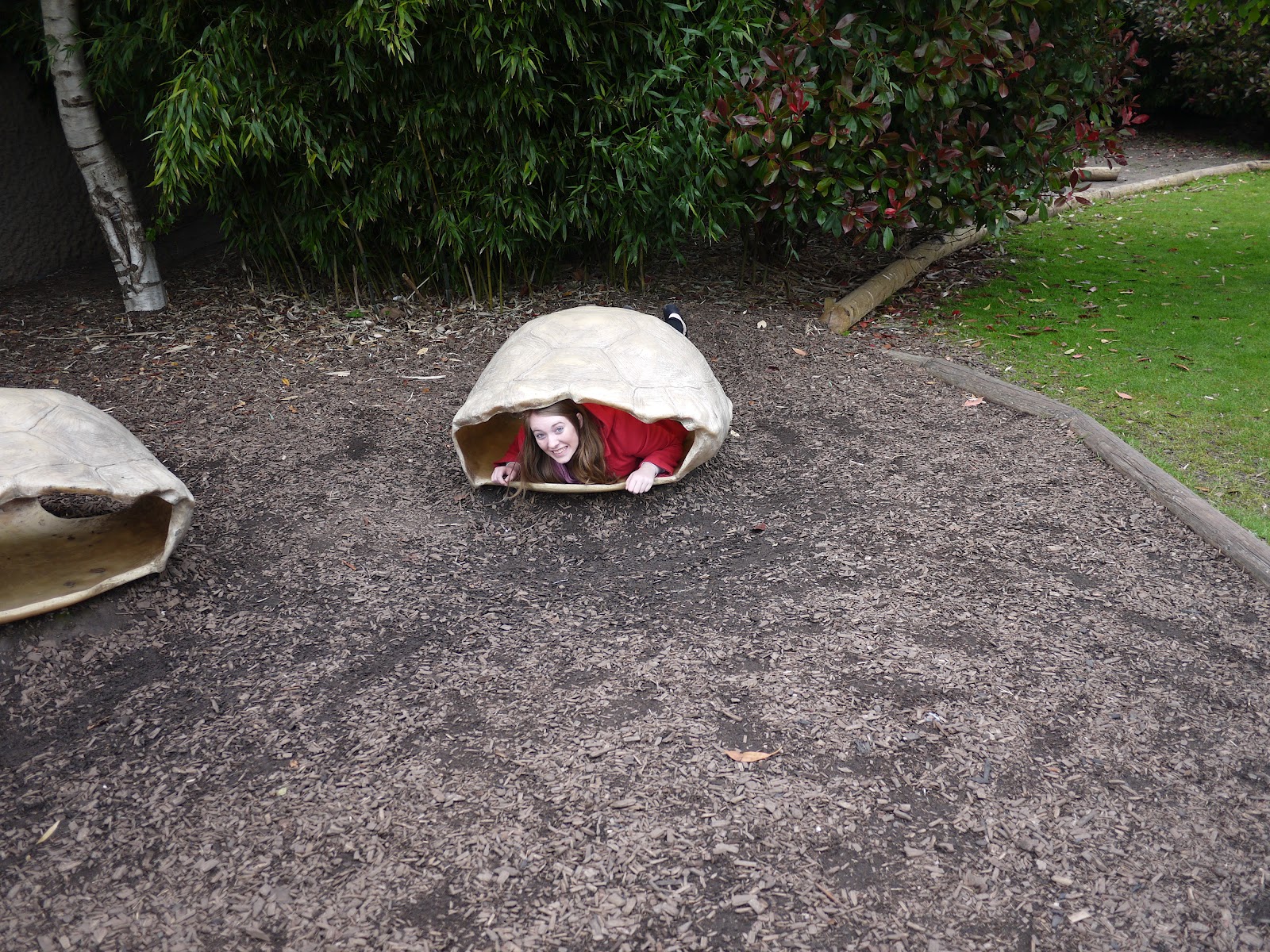 Rosie watched and said 'are ya ok?' as her mummy had to pull Aunty Catherine out of the turtle shell...