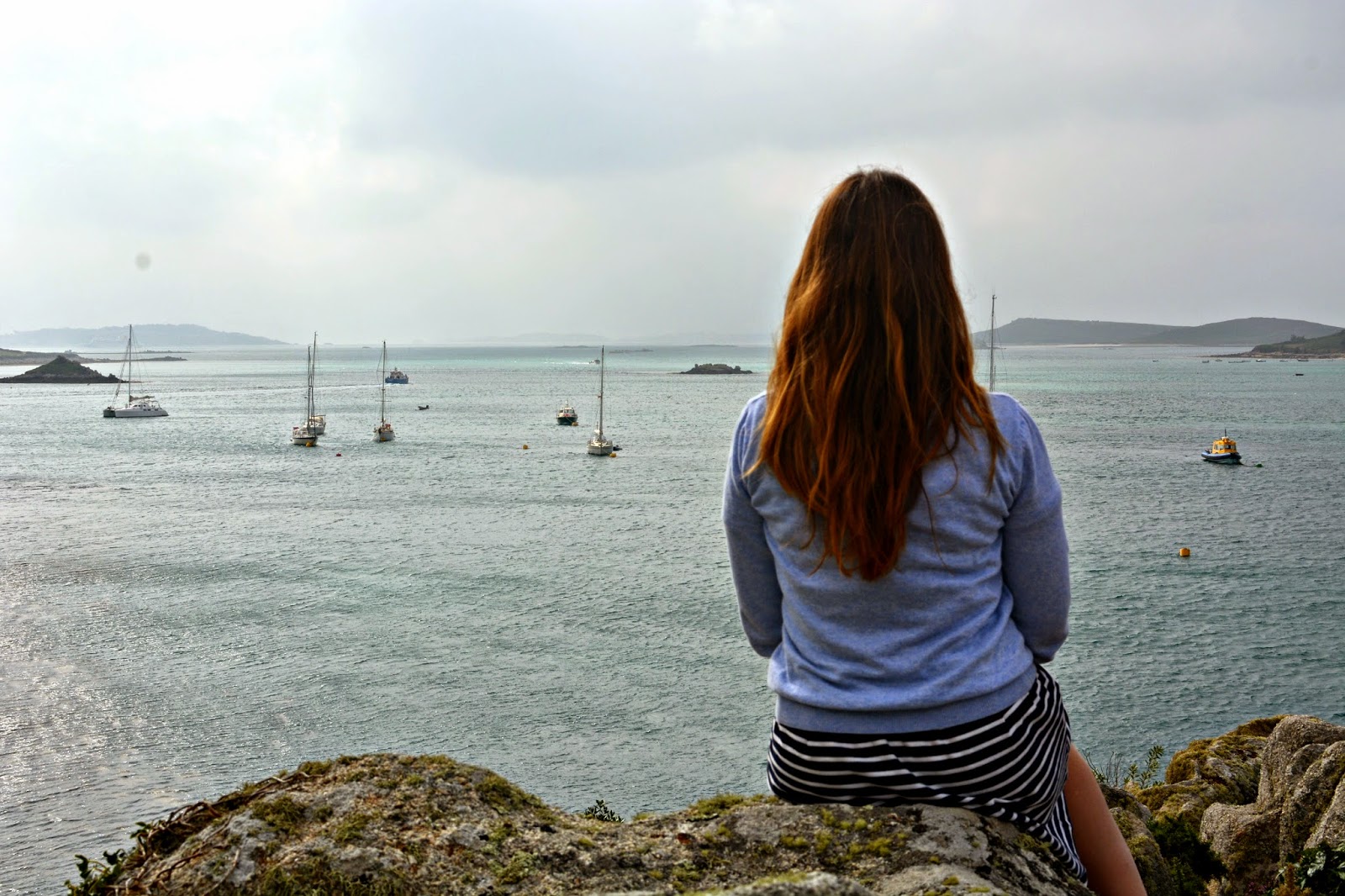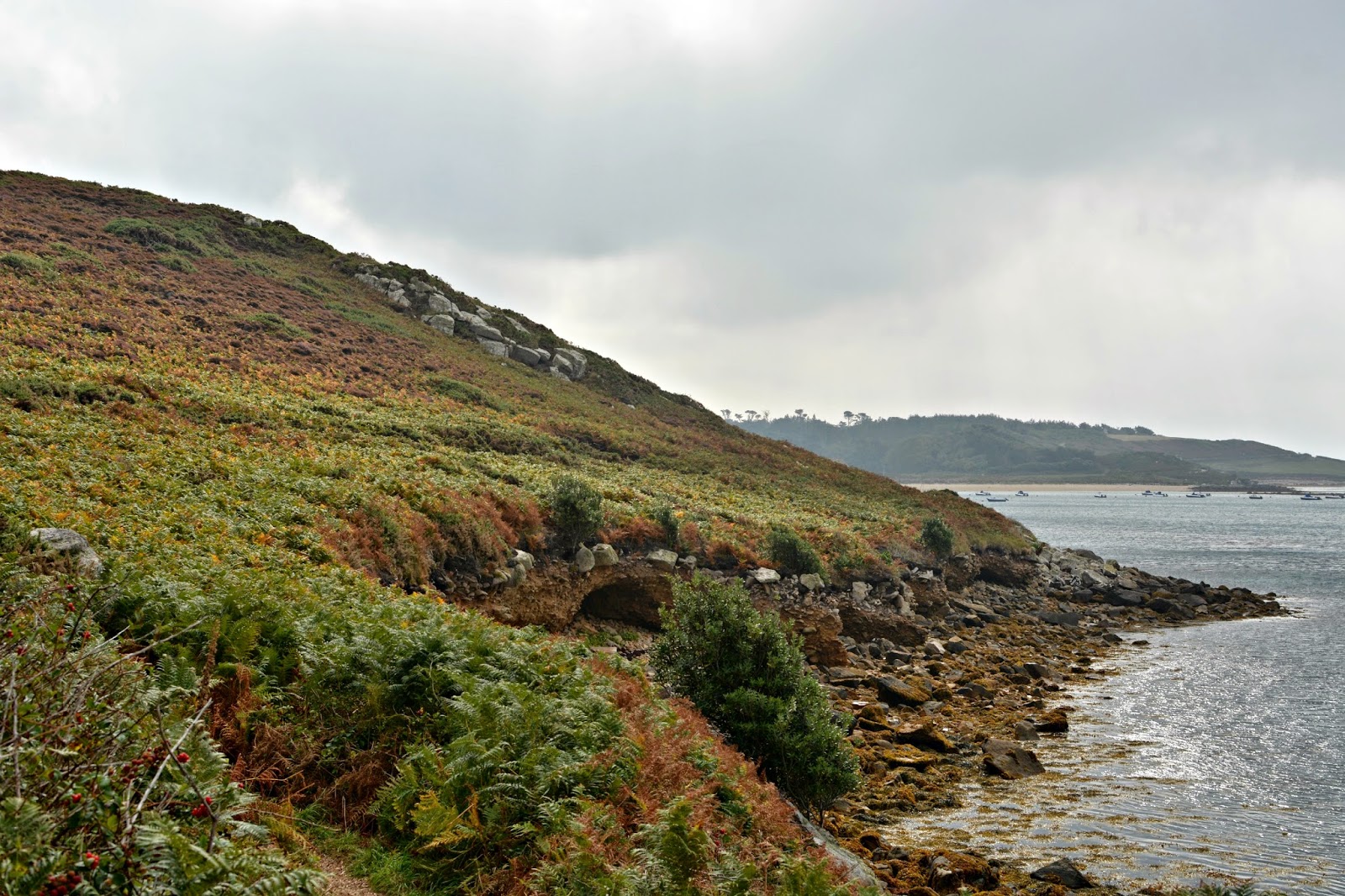 Isn't this view just marvelous? The weather is funny on Scilly. Behind the camera was clear blue sunshine, in-front, mean looking grey clouds threatening to ruin my adventurous fun.