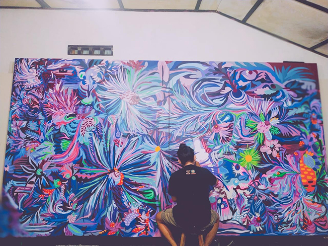 I was inspired a lot by the famous Indonesian artist, Widayat. His works greatly influence my artistic process, especially the formation of flora objects, landscapes and their dynamics.