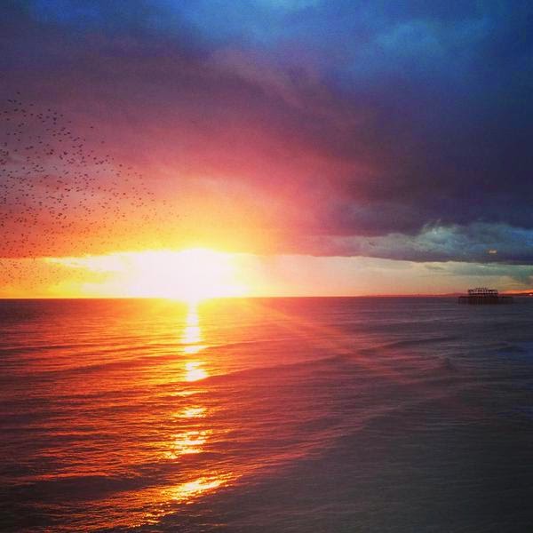 After our tea we then walked back to the house along the seafront, and naturally stopped off at the Pier for some donuts just as the sun was setting. It was the most beautiful sunset, while the famous Brighton starlings performed their murmuration for us.
