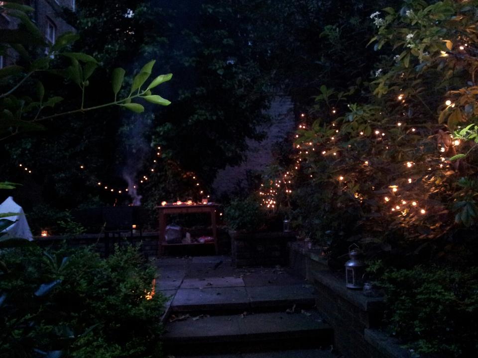 Sadly I only got photos at the barbecue with my house-mates, but here is a photo borrowed/thieved from Lotte, of her very pretty garden just before the barbecue started. How beautiful are the lights?! It looked like a fairy garden!