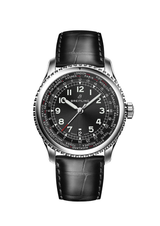 Navitimer 8 B01with black dial and black alligator strap. (PPR/Breitling)
