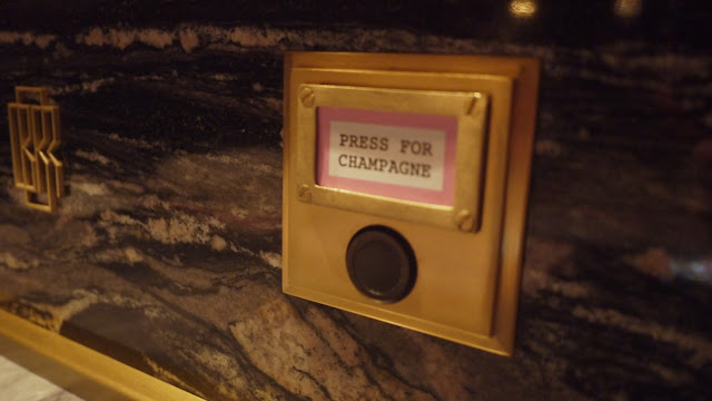 The famous 'Press For Champagne' button! We pressed. It came. Brilliant!
