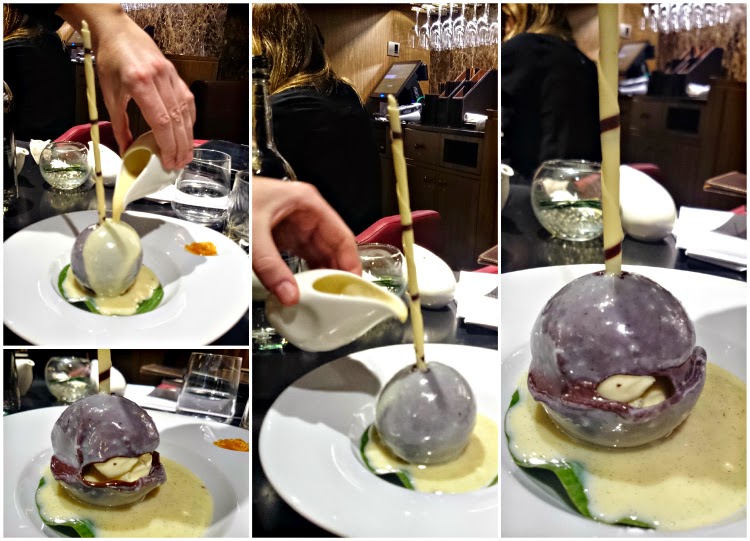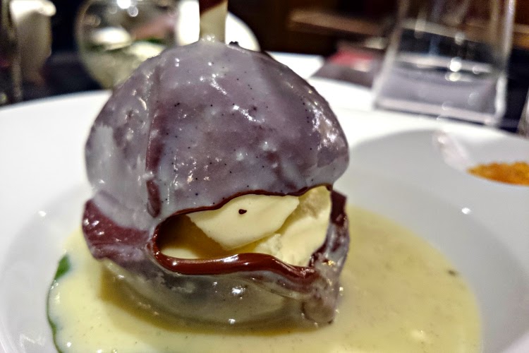 At 7:50pm the waitress informed us that she needed our dessert order as they had to close at 8pm. Erm, what. A restaurant closing...at 8pm...eight. pee. em. Ok, fair enough, we ordered the chocolate sphere and finished our cocktails. The sphere arrived and dramatically the chocolate melted away before our eyes to present a moreish gigantic scoop of vanilla ice-cream. The warm chocolate melted into the ice-cream and we tucked in despite our bodies telling us desperately to stop.