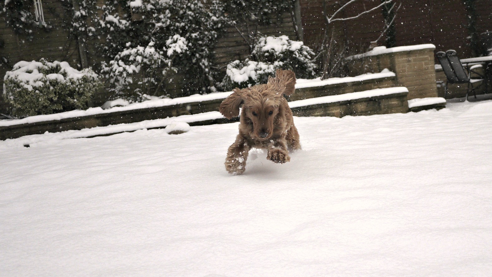 His funny bunny hop thing he does when he runs...