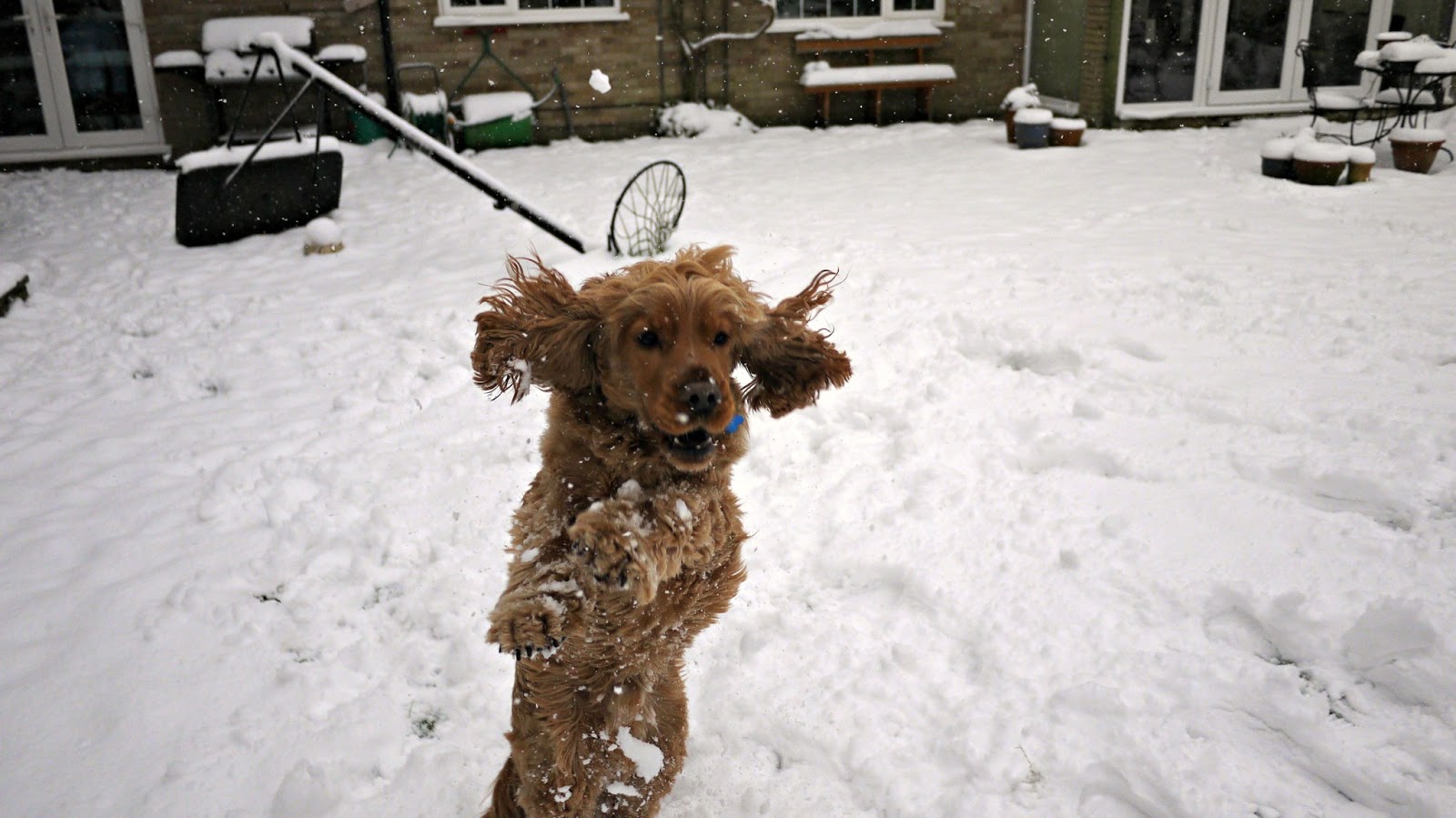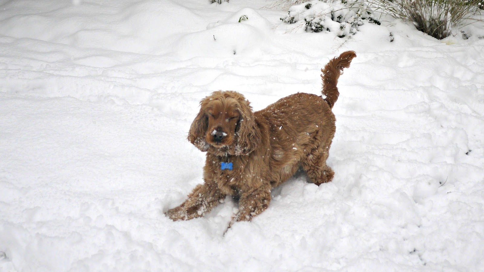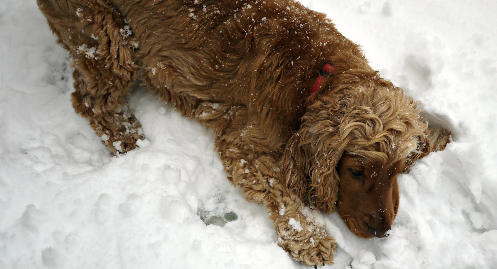 We had great fun rolling in the snow and throwing snowballs! I threw them and Dylan caught them in his mouth...his paws are far too big and clumsy to catch them in his paws. He raced around with snow on his nose, bumping into me trying to push me over, and acting a bit like a chocoholic (ie; me) in a big vat of melted down chocolate (mental image? good).