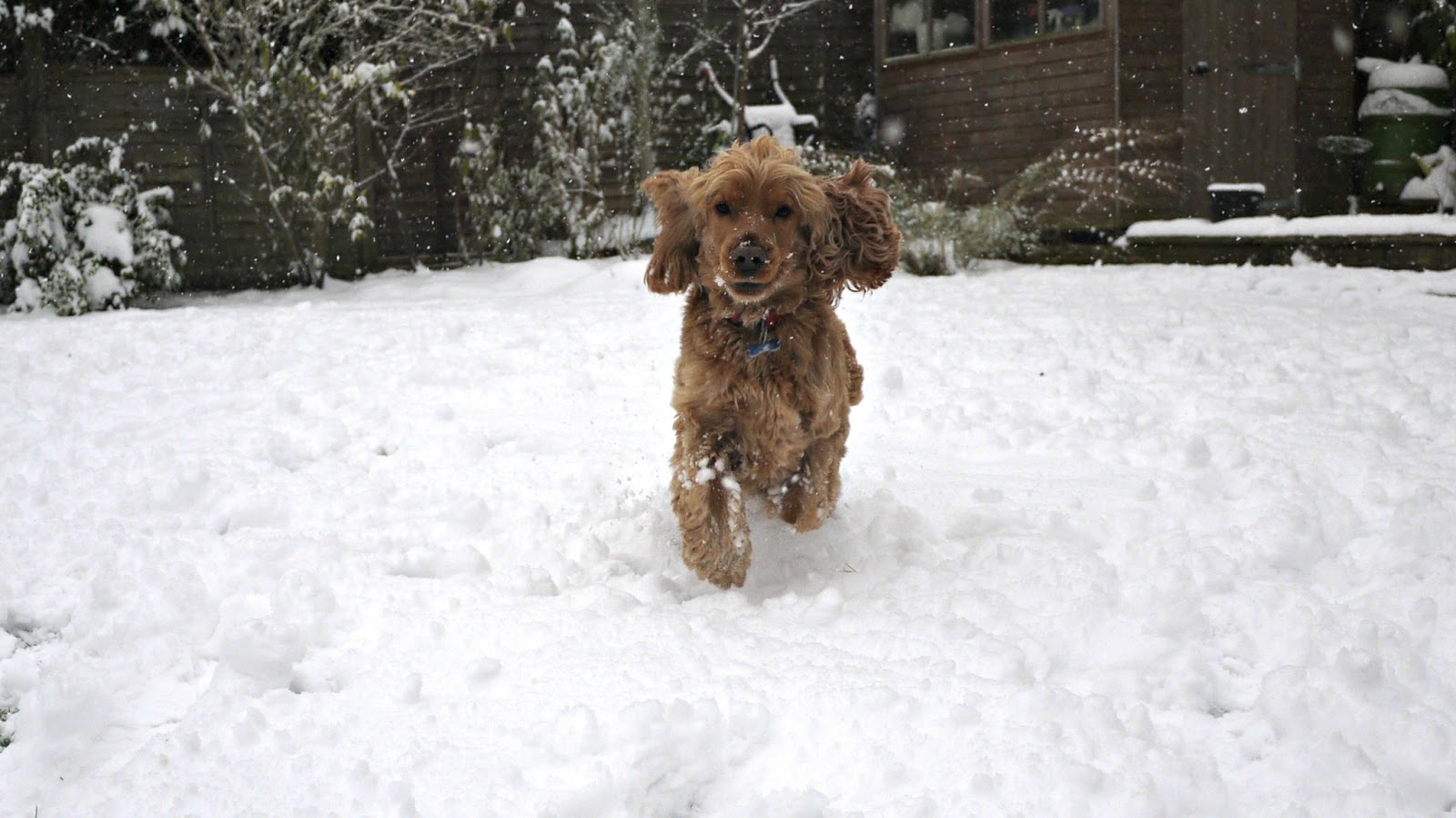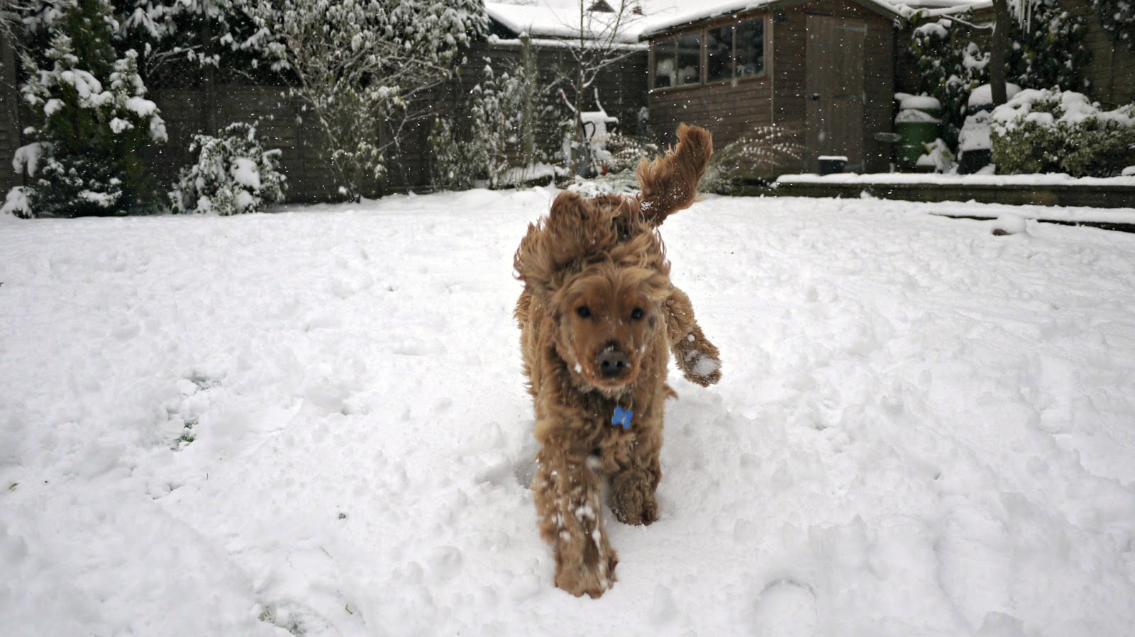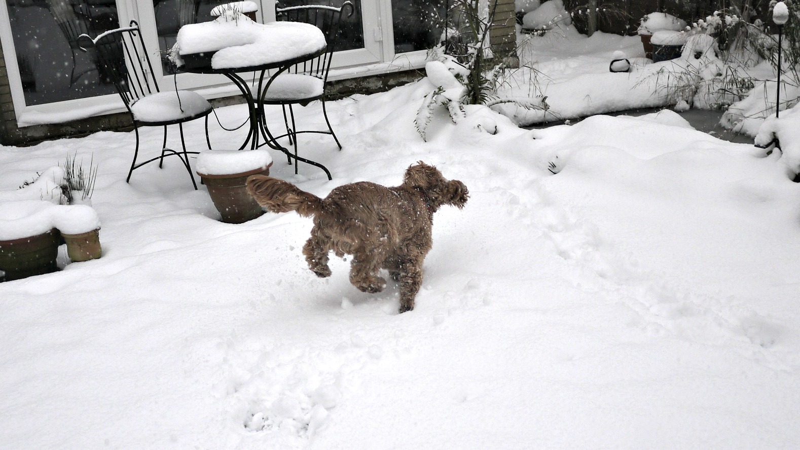 We had great fun rolling in the snow and throwing snowballs! I threw them and Dylan caught them in his mouth...his paws are far too big and clumsy to catch them in his paws. He raced around with snow on his nose, bumping into me trying to push me over, and acting a bit like a chocoholic (ie; me) in a big vat of melted down chocolate (mental image? good).