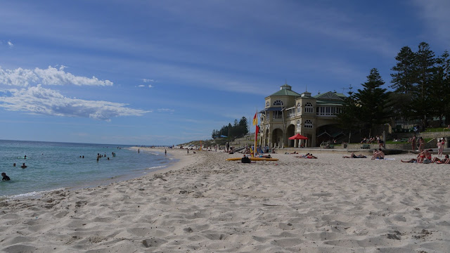 We grabbed a breakfast muffin and raspberry and white chocolate muffin and headed down to the beach to catch some rays and go for a swim. Going for a swim was a big mistake, although Cott is one of the best swimming beaches and an old favourite of ours, the ocean was full of jellyfish and stingers, and then a shark helicopter went overhead, boo :(