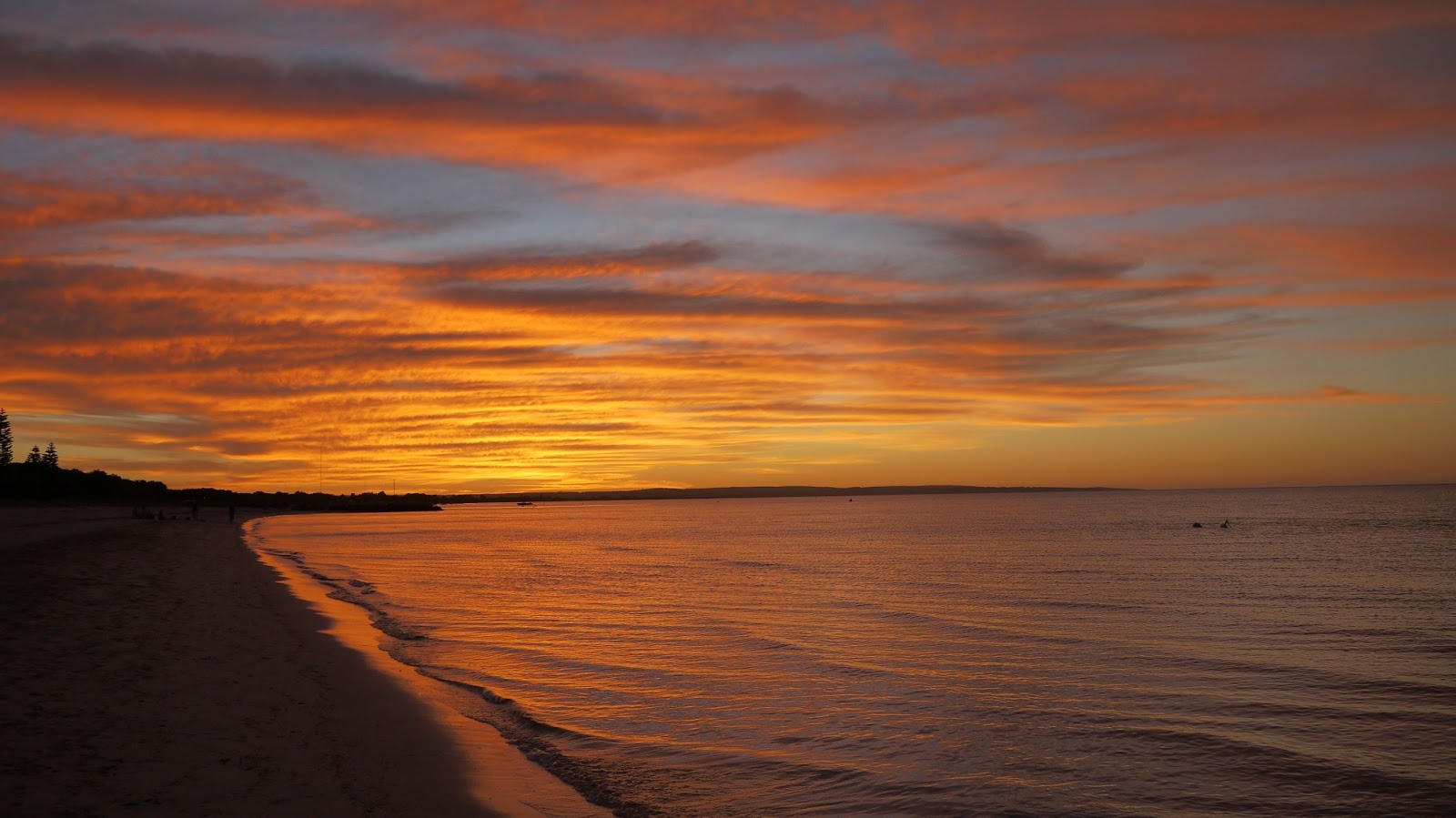 After stuffing my face on Easter Sunday with a huge cooked breakfast (done on the BBQ...Aussie style), and heaps of chocolate, we played tennis before strolling back to watch the sun set. The sunsets in Western Australia are my favourite, they're always beautiful. They start out looking all pretty before developing into an incredible fiery sky filled with colour.