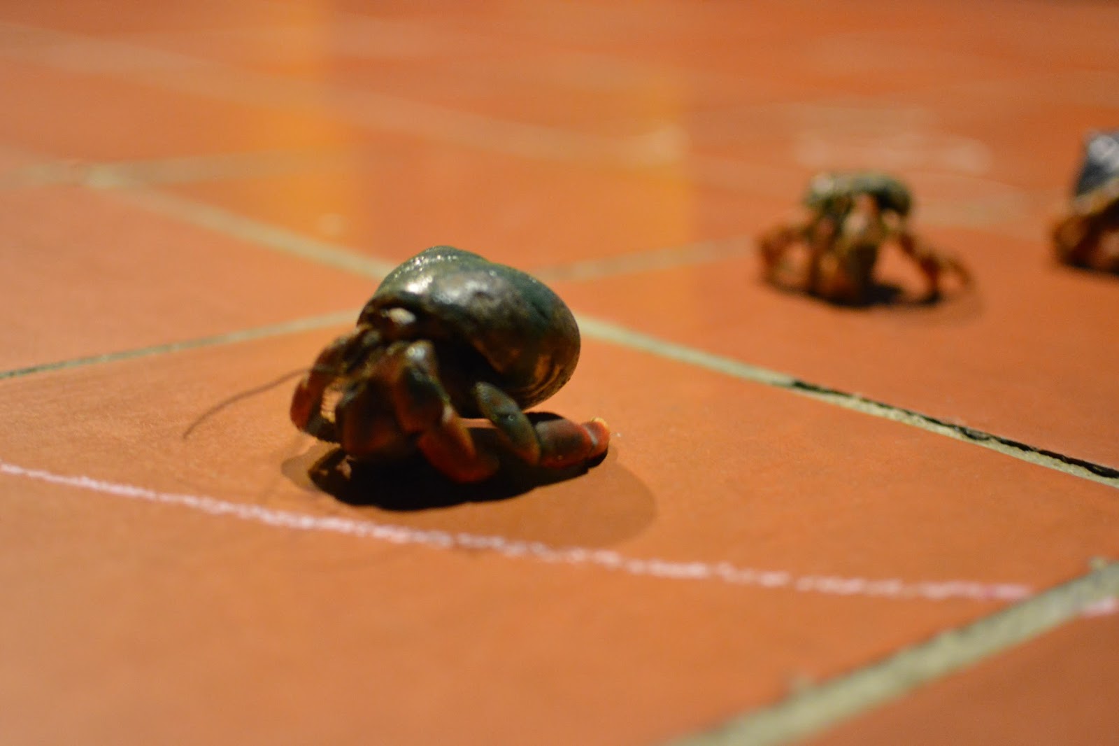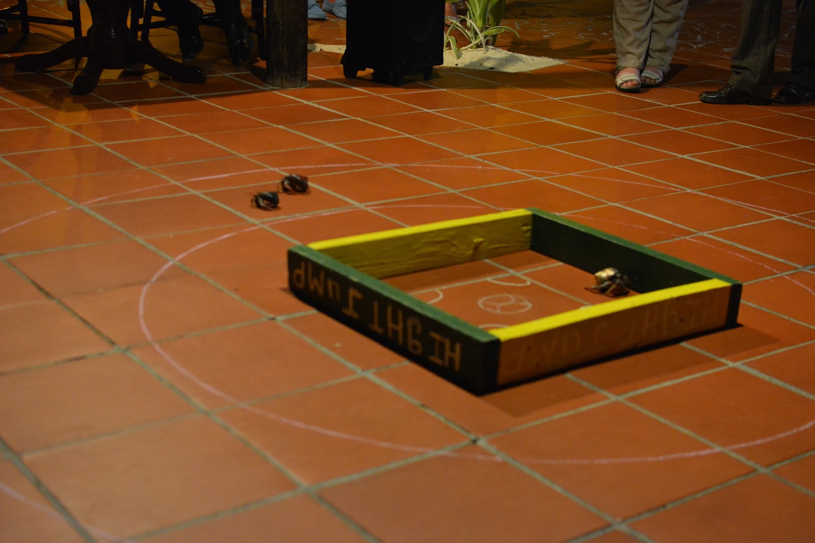 And another evening we took part in crab racing! Which was great fun and absolutely hilarious! They use hermit crabs, and once each one has 'raced' they let them back into the wild.