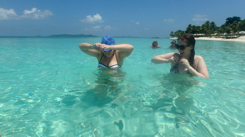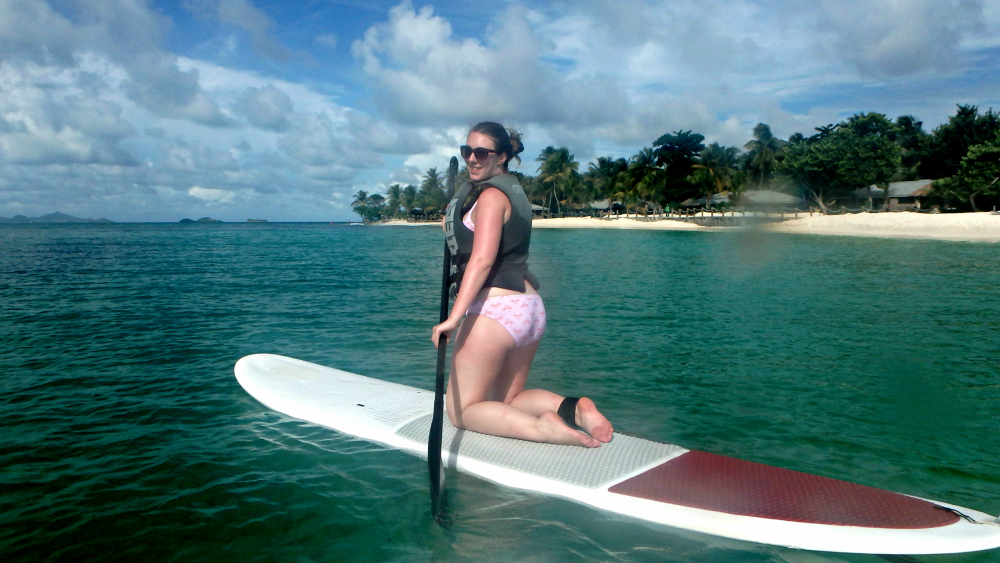 One afternoon we went paddle boarding, and it didn't go too well. It looks so easy!!! It definitely isn't. The afternoon we chose was the afternoon it was really windy, so when Rach tried to stand up she fell off, and I was too scared to even attempt it so I just stayed kneeling. With the strong wind it was super difficult to paddle, and I ended up drifting out over the dark deep patch of water towards Union Island. Naturally I started panicking and erm...screamed...very loudly...shrieking for help...I just panicked OK! Thankfully I managed to paddle as hard as possible and get back to the beach! I won't be paddle boarding again.