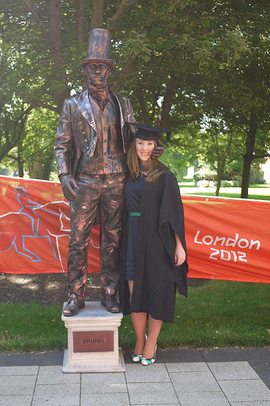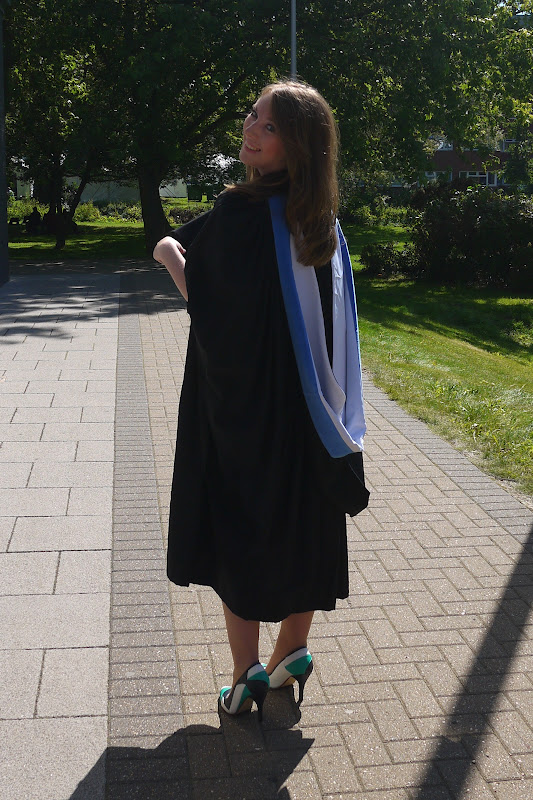 The day was wonderful, and thankfully the sun shone! It was a little too warm in our huge thick gowns though, and my make-up pretty much melted off in the 33 degree heat. We were also really lucky in that the Olympic Torch passed through our campus just an hour after the graduation ceremony finished, with Katy B and Mark Ronson carrying it! I saw Katy B, but Mark Ronson was over the other side of campus waiting for it, and there was no way I was running across campus in heels!