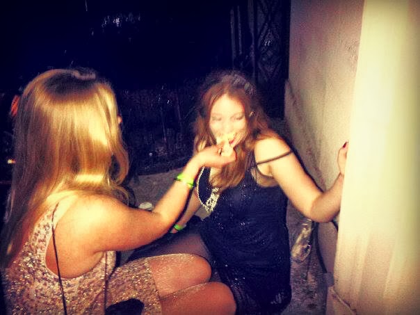 After dancing a little too crazily I felt woozy and needed air, so some friends accompanied me and a plate of cream cakes to the balcony, where Lotte and Dan decided to grab the cakes and shove them in my mouth to stop me from passing out. Lotte missed my mouth, and my face was covered in cream cake, as you can see below. Lovely. It was such a crazy night it really did feel like a party at Gatsby's!