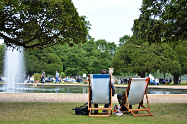 We got to Hampton Court for 6:30pm, and easily found the parking towards the back of the palace. We parked in a field within the grounds along with everyone else, then walked the short distance to the gardens.
