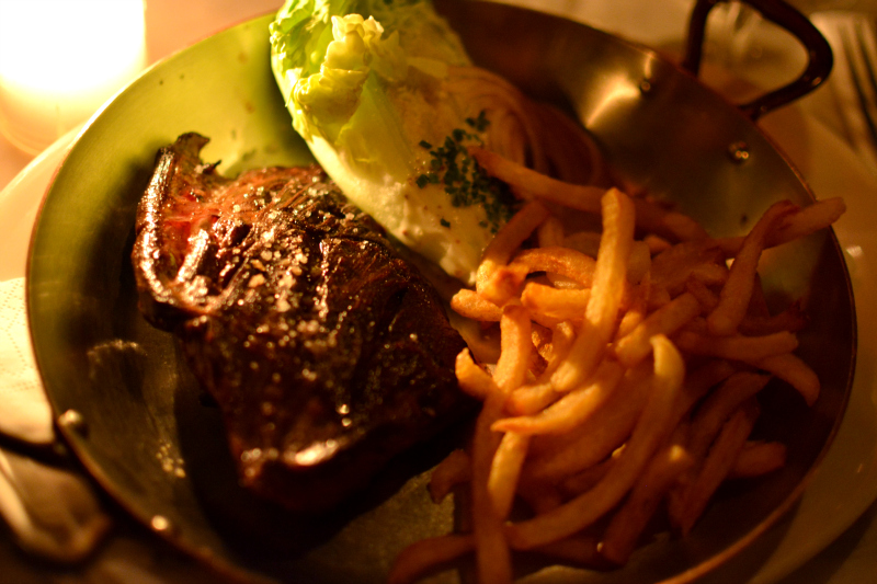 We perused the menu and decided to skip starters and have mains and desserts. I wanted a huge piece of steak, and I knew that I wouldn't be able to have dessert if I had a starter as well. While we waited for our mains I sipped on my delicious fruity cocktail (the others had wine) and we all munched on the freshly baked bread and beautifully salted butter. You really can't beat French bread and butter.