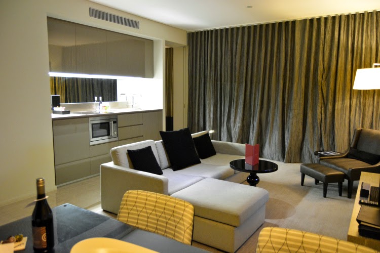 I checked in and made my way up to the 12th floor where my one-bedroom premier suite was located. You could only use the lifts with your keycard, which made it feel really safe and secure! I was completely blown away with the suite, it was fresh and modern, and included small touches that just made it feel really glamorous and contemporary. They very kindly left me some treats on the dining room table - including a bottle of their own Shiraz!