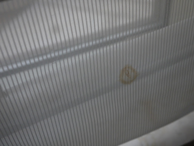 To put it bluntly, it looked like a CSI Crime Scene that hadn't (or couldn't) be cleaned properly. My mum suggested maybe they were food stains, but as you can see from the photos above, food doesn't create that strange sort of stain. And even if it was food, it's still absolutely disgusting and incredibly unhygienic! I don't want to bore you with photos of stains, but what you see above was all over the blinds. And as well as the stains, the top of the blinds were covered in mould and dust. I'm allergic to mould (no joke, I've been tested - it make me sneeze like crazy and my chest tighten up to the point I need to use my Asthma inhaler).
