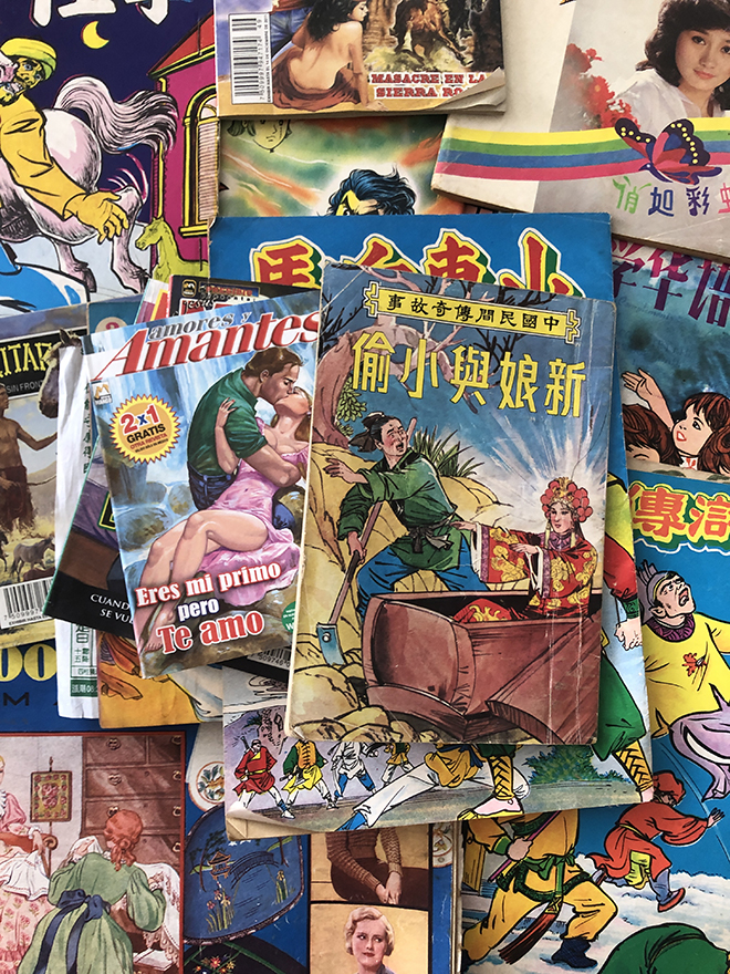 Tell us more about the incredible collection of comic books, 80s advertisements, B-grade movie posters you have amassed over the years. When did you start to collect these? Are these still easy to find or are you now more looking for references and inspiration online?