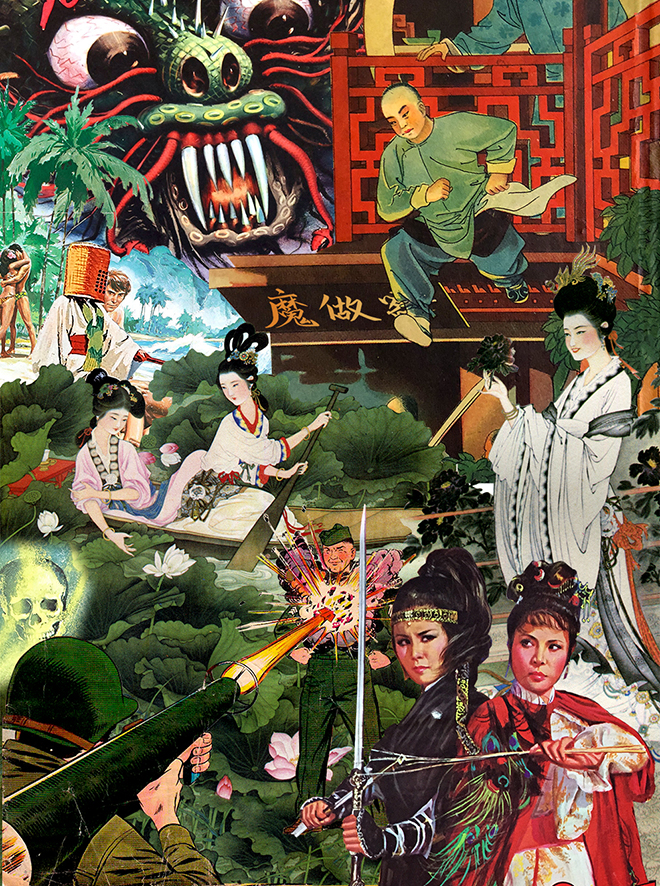 I must have started collecting around late 90’s. Everything from Rave flyers, typography, vintage catalogues and that just became a habit to seek out the obscure things in flea markets and jumble sales. I used to make scrapbooks and then anything that was not cut up was put into a kind of filing system. I still keep on searching for new (old) things, that’s what keeps me going and triggers inspiration. And yes online has become a valuable resource for finding things, but in Asia there is very little 60s,70’s pop culture documented online, you have to dig for that the old fashioned way.
