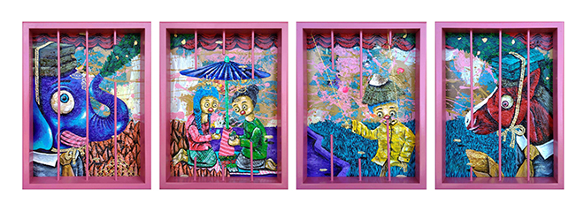 Your art is vibrant with vivid colours and cartoonish characters – yet it is easy to sense a not-so-hidden criticism of our modern societies. What message do you wish to send across in your art?