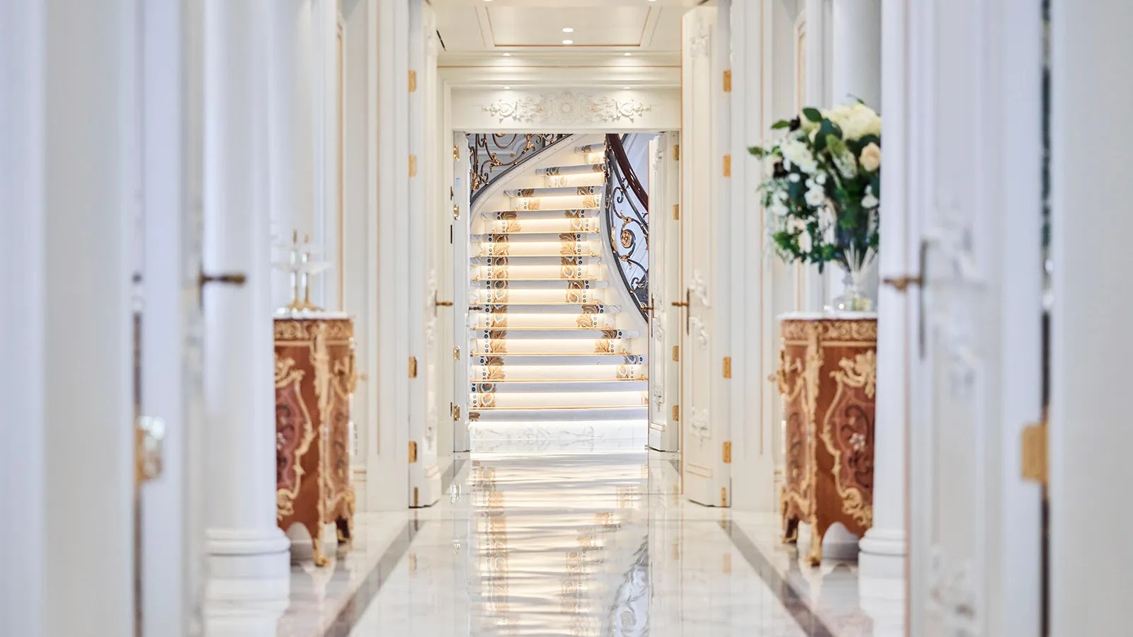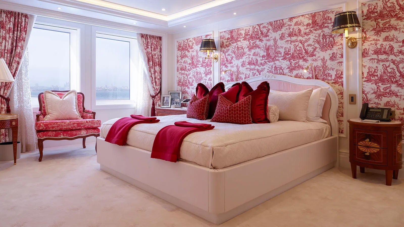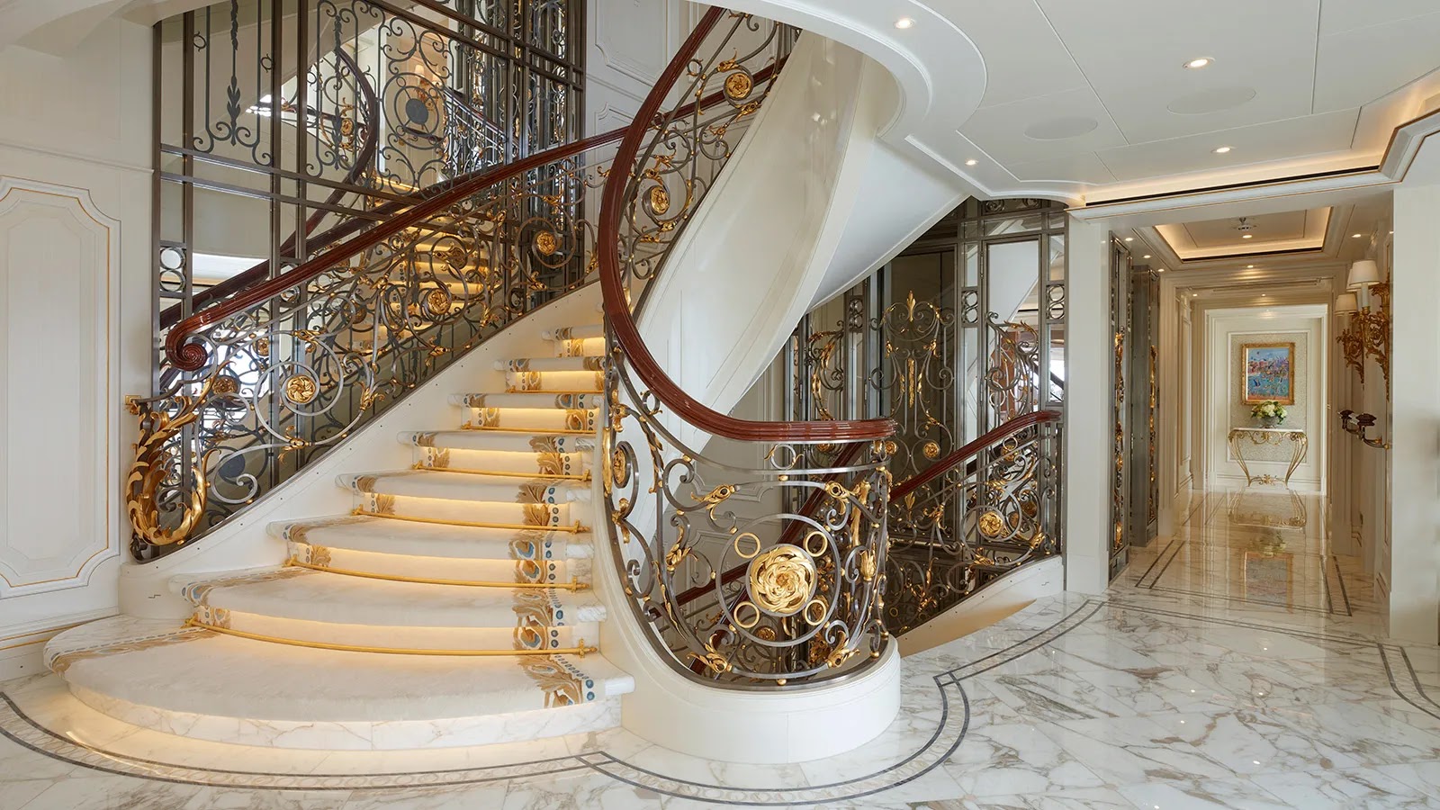 Some of the spaces rival Versailles for elegance, with Louis XIV to XVIII-inspired furniture on the main deck and carpet patterns mimicking those of the era from Parisian salons.