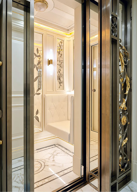 The adjacent glass lift is a Beaux-Arts gem complete with a little velvet seat for the weary.