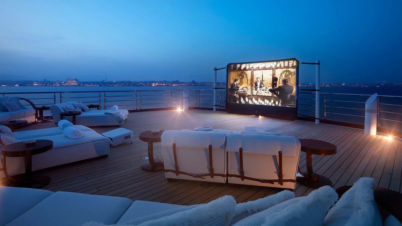 When the weather is sour, Tis's guests always have the option of retreating below decks and reclining in comfort in the yacht's second, indoor cinema.