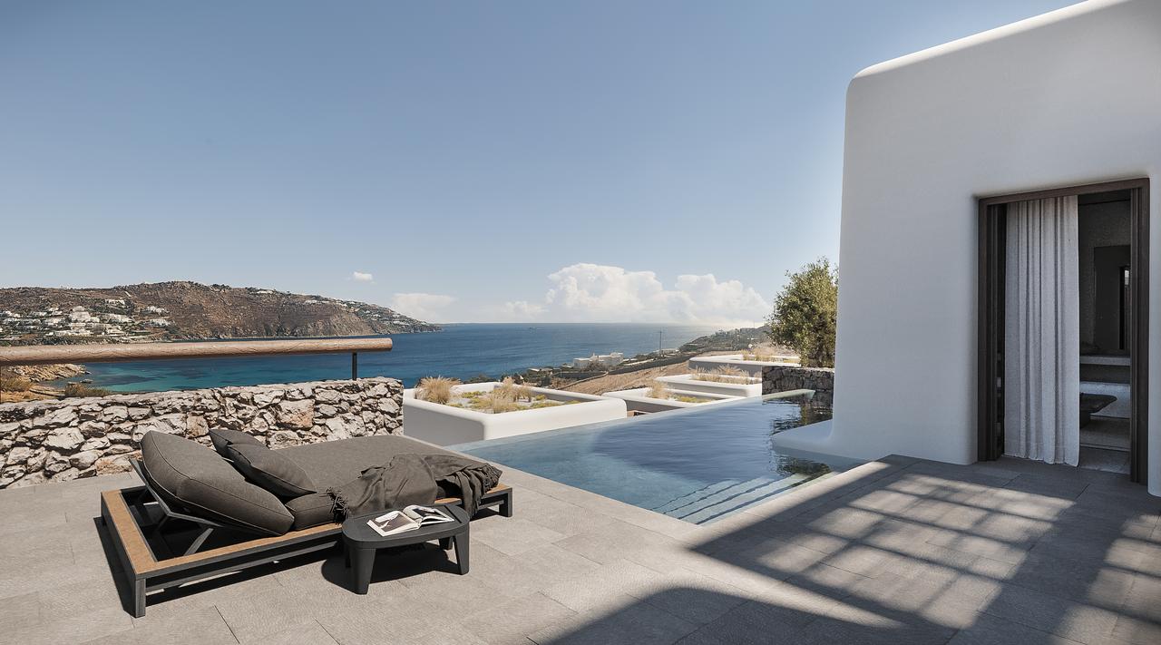 Kalesma Mykonos is a new build 25-suite and 2 Villas luxury boutique hotel set on the hillside of Ornos Bay, seemingly secluded yet easily accessible, offering stunning views to the Aegean sea and glorious sunrise and sunset views.