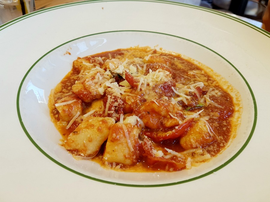 Thankfully the mains were far better. We chose the potato gnocchi with roast tomato, basil, and Parmesan, and the lamb and aubergine ravioli with rosemary sage butter, ricotta, and pistachio.