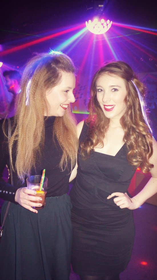 As you know already, I love my nights out, and have done for a few years now. I'd only been to Maggie's once before, even though it's right next door to VQ, which I used to frequent on a very regular basis at 3am. Last Thursday I went a second time, for the Maggie's x MichaelJohn's 80's Big Hair party. Michael John are a local hair salon, so naturally they were the best people to turn our hair into the stuff the eighties were made of. Jemima also got an invite, so she invited her housemate Caroline and I dragged Edd along as he and Jemima are friends too.