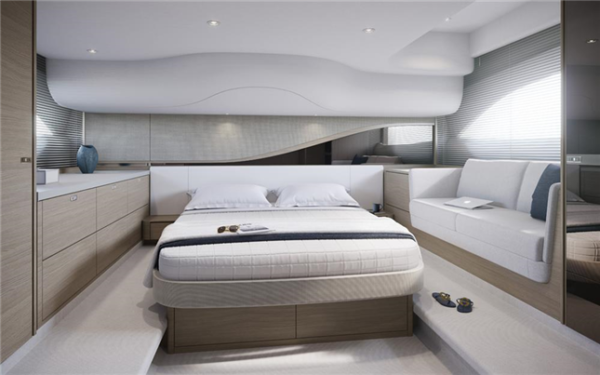 Innovations are to the fore in the yacht’s layout. Its interior space is defined by the Princess resin-infused deep-V hull, which lies at the heart of the yacht, and its structural form provides vital functions and technical sea-keeping advantages, optimising lift and reducing drag whilst underway.