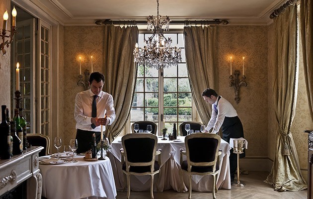 In the morning and evening, we had our black antique fireplace lit by the butler. We not only slept to the primal sound of the comforting fire, but we also relaxed nearby in our gilded claw-and-ball bath. It's pure luxury in here, oozing with a richness that feels authentic while at the same time the 21st century is tucked in with refined subtlety, down to dim the light from the crystal chandelier overhead. The staggering gilt Rococco styled bed felt large enough for an entire royal family with butter-soft bedding and dreamy down pillows.