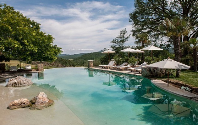 The infinity pool is designed to blend in seamlessly with its surroundings. This pool not only looks sensual and organic but, being sourced by natural spring water, a swim feels blissfully authentic. Cocktails can be enjoyed at a bar set within the pool's cooling water – not particularly Tuscan, but it's these little details that make this place so alluring. A short pitter-patter from the pool nestles a rustic bar room – a little Ibiza or St Tropez-esque, in an outdoor room that feels like an African look-out hide, complete with aged leather sofas, a large flat screen, low tables sprawled with backgammon sets, comfy armchairs, and mini-me rattan furniture for young ones.