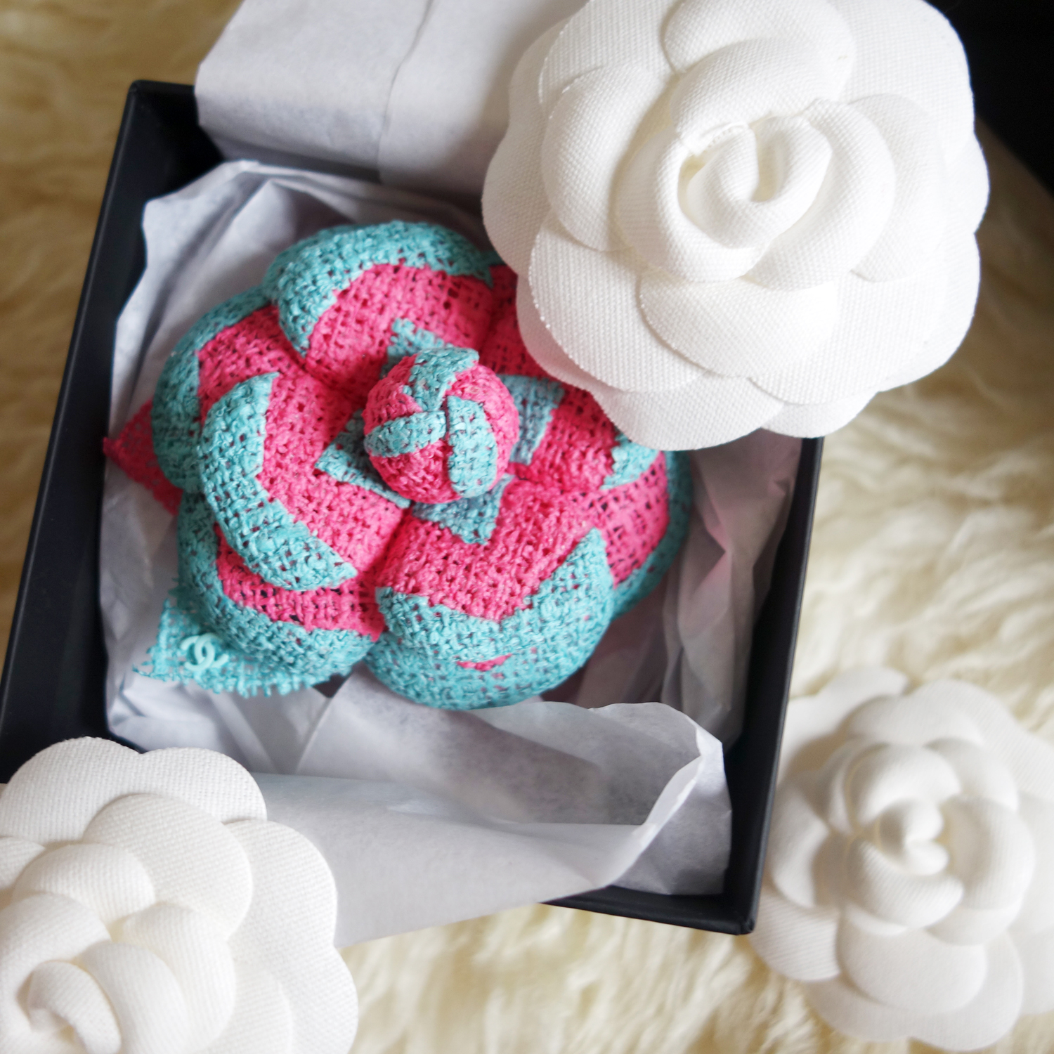 We love our favorite flower on our Chanel shoppings bag but not only there. Pimp your jackets, blouses or even hats with a timeless Camélia brooch!