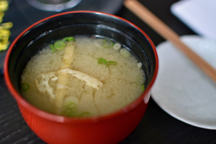 While we were tasting our cocktails the spinach with cassava and white miso soup arrived. This soup is my favourite soup of all time, Sake no Hana serve it with almost every set and special menu they do, and I love it.