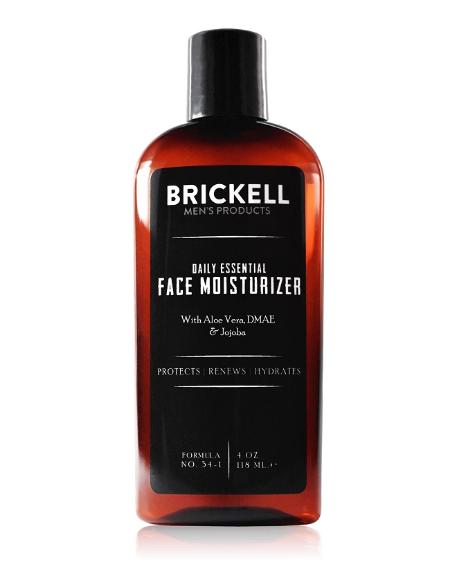 Brickell Menâs Daily Essential Face Moisturiser contains aloe, jojoba oil, vitamin E, green tea and hyaluronic acid â ensuring water retention and hydration. This oil-free moisturiser also results in clearer and firmer skin for freshness throughout the day. Due to the vast range of ingredients used, the various skin types will be able to take away something from this. Not to mention, this is all natural too.