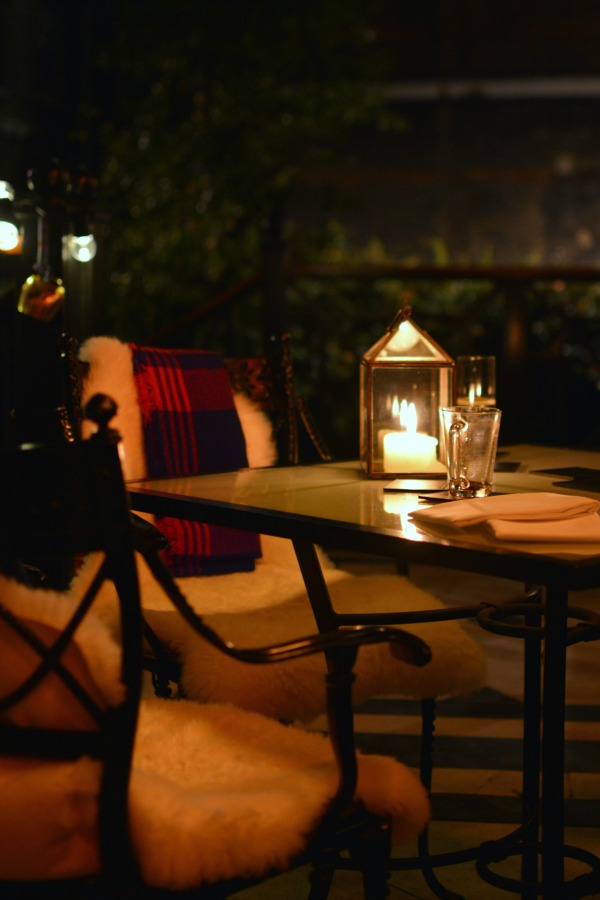 We walked through the bar and out to the back terrace where the pop-up is located. It was all warm and cosy, with sheepskin throws, heaters, candles, and classic jazz softly playing. The atmosphere was a sort of content happiness, with groups of friends and couples sipping on cocktails and mulled wine and just enjoying the evening, the sound of laughter erupting every so often.