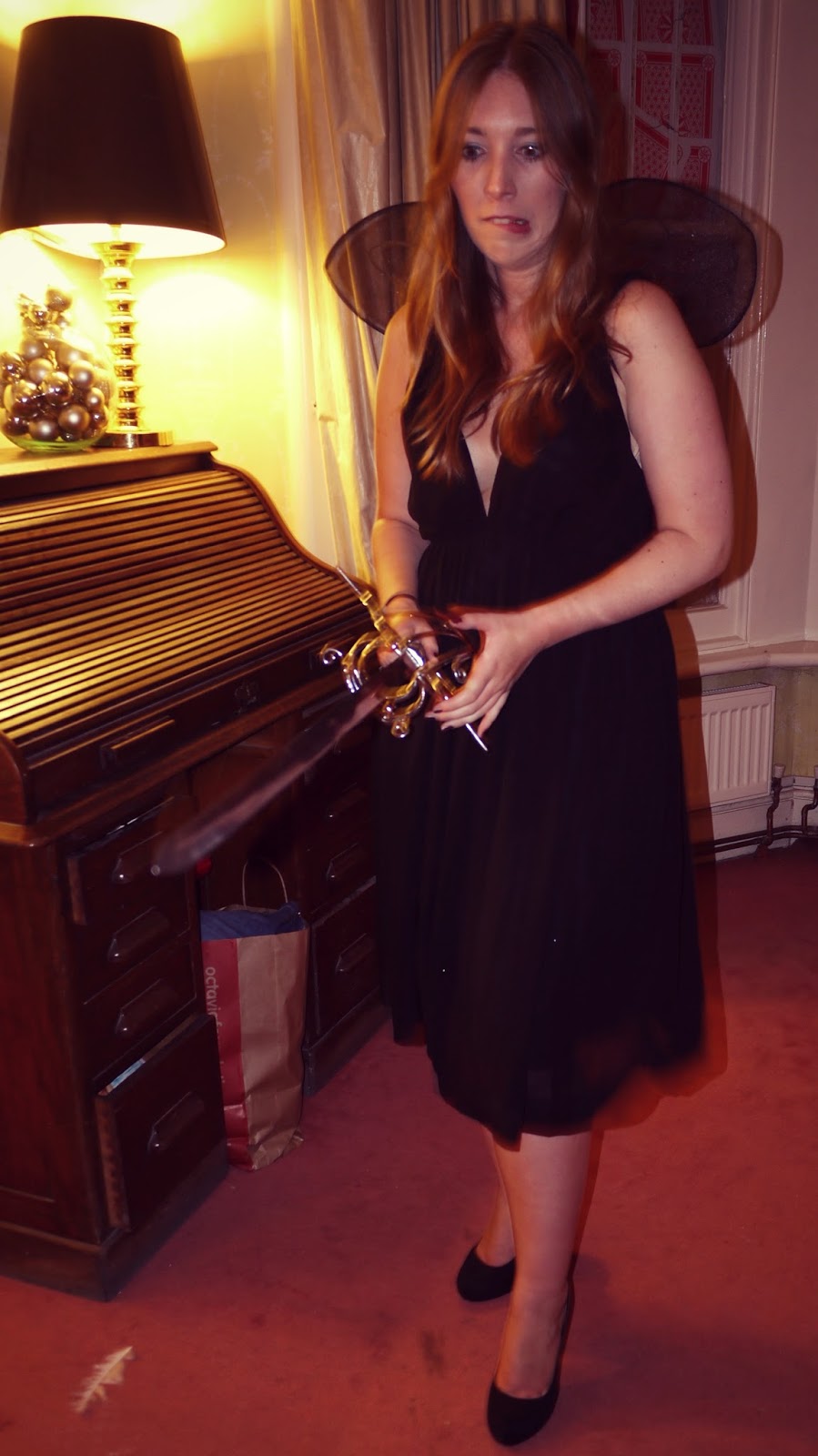I wanted to wear a black dress (an old one from Kate Moss at Topshop), so went as an 'evil fairy', and paired it with black wings, black heels, and smokey eyes. One of my close friends from school in Australia was visiting me, so she came too, and it was great to party with her again after over 2 years of not seeing her! All of the photos below are a mixture of mine and the photographer's. The awesome photographer was Gregory Davies.