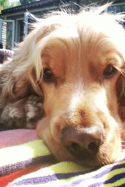 Anyway, I am seriously loving this sunshine, although I didn't love my puppy dog, Dylan, leaping over me again and again as I sunbathed...and then proceeding to lick the sun-cream off my stomach.