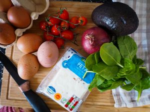 Weekend Brunch: Lamb Stuffed Omelette with Red Onions and Feta