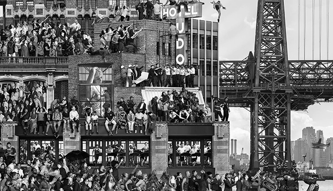 The image which features 1,128 civilians standing on buildings as the Freedom Tower, Williamsburg Bridge and Empire State Building stand tall in the background – is a collective portrait of individually photographed subjects from all five boroughs. When viewed at the museum, the piece is accompanied by audio recordings of those portrayed in the mural and are subsequently available on the JR murals app, as well.