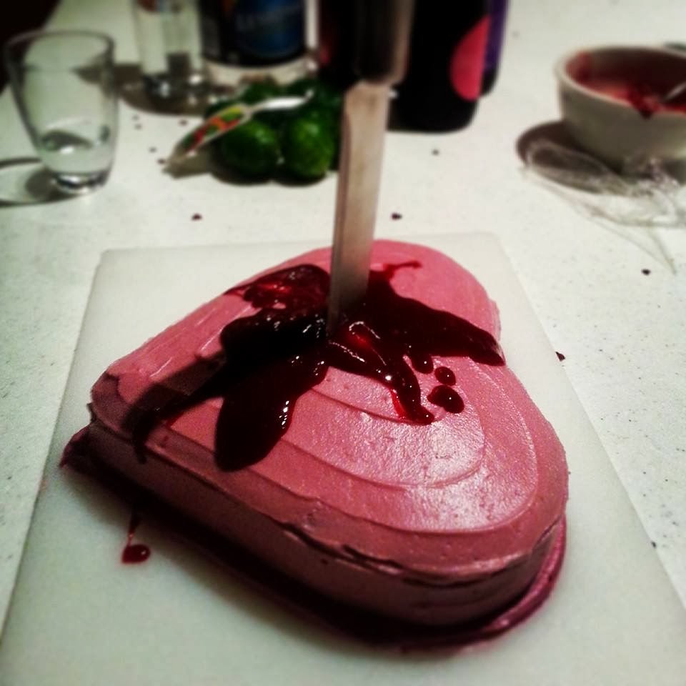 The following day was spent relaxing and watching movies and recovering, and then having yet another night with little sleep. As it was Valentine's Day my friends threw a big party, which included a very lethal punch, and a delicious red velvet cake, that looked like this...