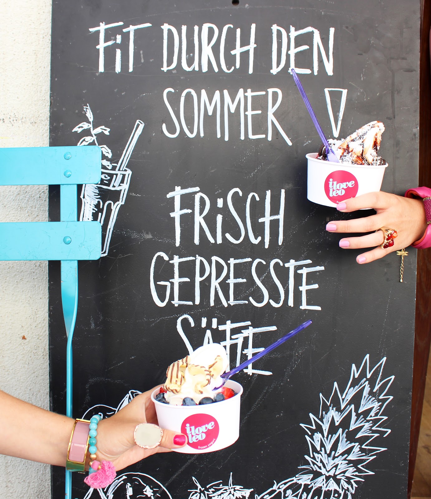 Iced yoghurt is just perfect for a delicious refreshment in the grand finale of this amazing summer. And actually in every other season, too And the best about Froyo is that it tastes like ice cream but is way more healthy. Plus you can mix your very own combo. “I love leo” offers almost every topping you can wish for and an amazing quality of fresh fruits!